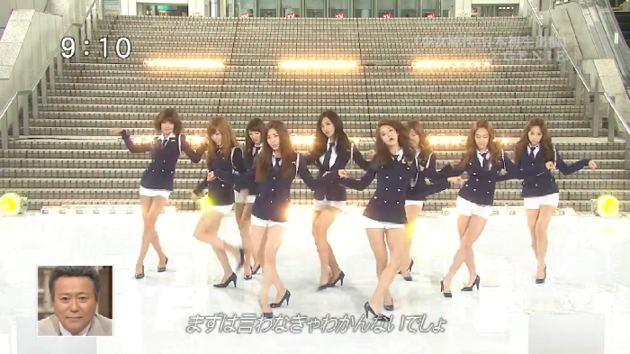 이 장면은 보너스(?)인데, 2011년에 일본 진출을 선언한 후 방송에서 처음으로 선보인 아침정보방송 Genie무대입니다. 아침방송 무대가 몇 개 더 있는데, 오다이바의 후지TV, 닛폰테레비 등의 로비가 있었죠... 자세히 보면 세트 무대 아니고 그냥 방송국 외부 계단입니다. 하지만 아주 간단한 사이드 조명과 무대 바닥만 있고 실외의 햇빛 아래에서 펼쳐지는 무대임에도 굉장히 밝고 산뜻하고 생생하게 연출이 되어서 화면도 너무 예쁘고 세상 다시없이 스타일리쉬하게 나온데다 일본에서 '미각그룹'으로 인기가 생기고 있었기 때문에 이 때 선보인 소말의 전매특허 학다리춤이 제대로 어필 완료! 아침방송의 이슈몰이 성공으로 소녀들은 일본데뷔 이후로 장기간에 걸친 전국 콘서트 투어와 베스트앨범까지 내는 큰 성과를 거두게 됩니다.