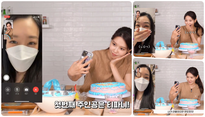 데뷔 14주년을 맞이해 기념케이크를 만들어보기로 한 수영이의 '수토리'에 영상통화로 출연했습니다. 베이킹을 너무 오랫만에 해서 좌충우돌 우당탕탕으로 만들었는데, 이시국이라 다른이들에게 나눠줄 수가 없어 일단은 영상통화로라도 멤버들에게 인증(?)을 받고자 영상통화를 시도합니다. 그중 1빠는 역시 '수토리 고정 멤버'인 티파니! 바깥에서 활동 중이라 마스크를 쓴 채로 나와서 조금 아쉬웠지만 수영이의 케잌을 보면서 "니가 만들었음 맛있겠지 뭐!"하고 무한 칭찬모드ㅎㅎ 으아. 빠니랑 영통할 수 있는 셩이가 지금 이순간 젤젤 부럽다! 너무 찰나였지만 그래도 빠니 얼굴 이렇게 비춰준 수영이 짜란다짜란다짜란다~