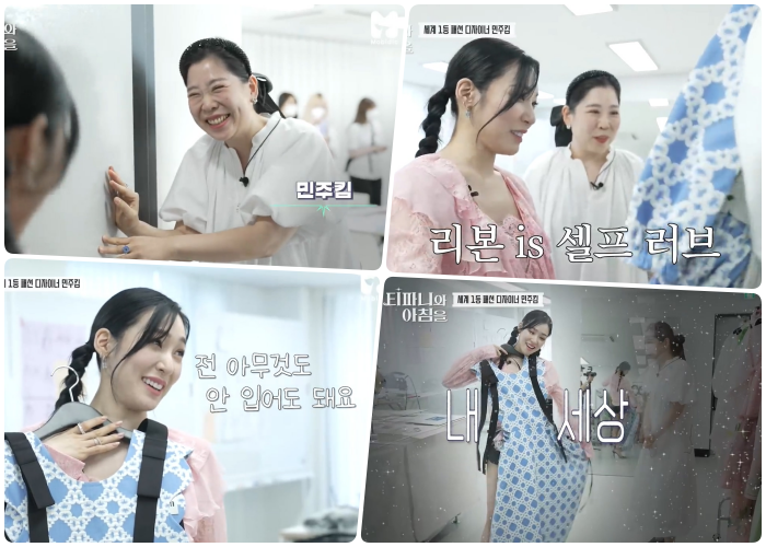 이와중에 서현이가 과감한 드레스를 좋아한다는 얘기를 하면서 디자이너님이 "티셔츠를 받쳐입고 입어라" 라는 멘트에 아무것도 안입고 입어도 된다며 이렇게 캘리포니아인의 자신감 뿜뿜 노출하고 오늘도 역시나 많이 당황하신 우리 민주킴(a.k.a 유교걸쌤)... 파니 스타일에 빨리 적응해주세요...ㅋㅋㅋ